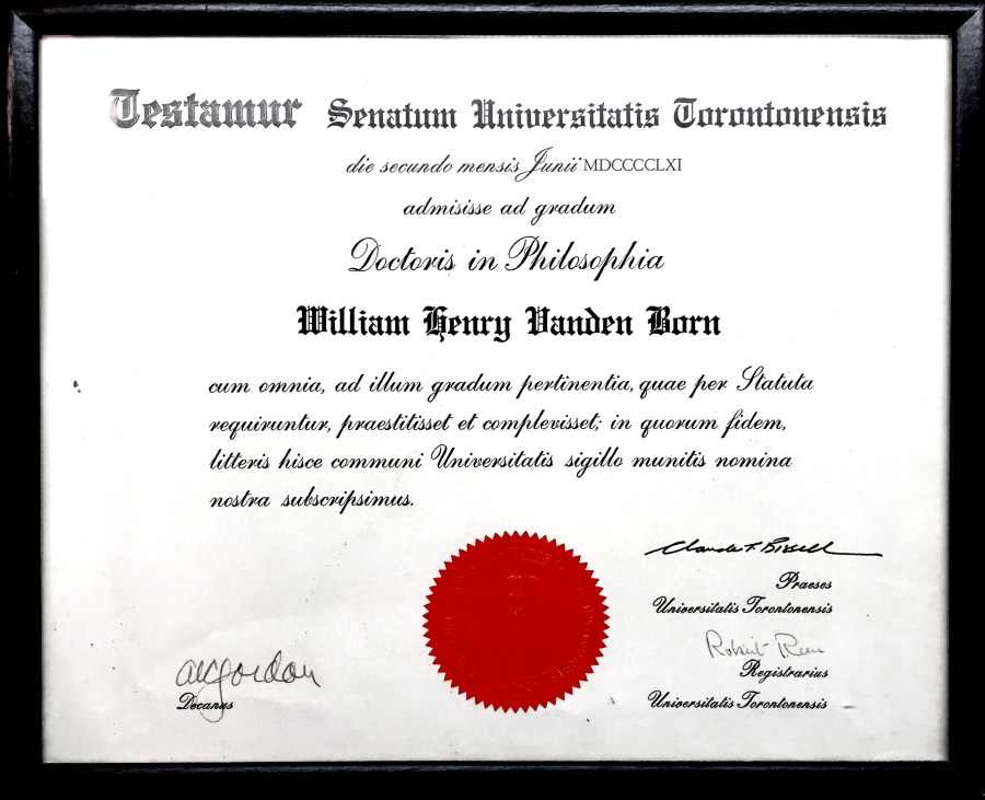 Ph.D. certificate University of Toronto 1961