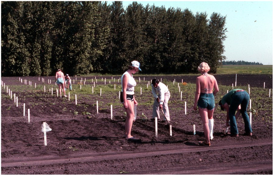 Students planting Canada thistle 1980