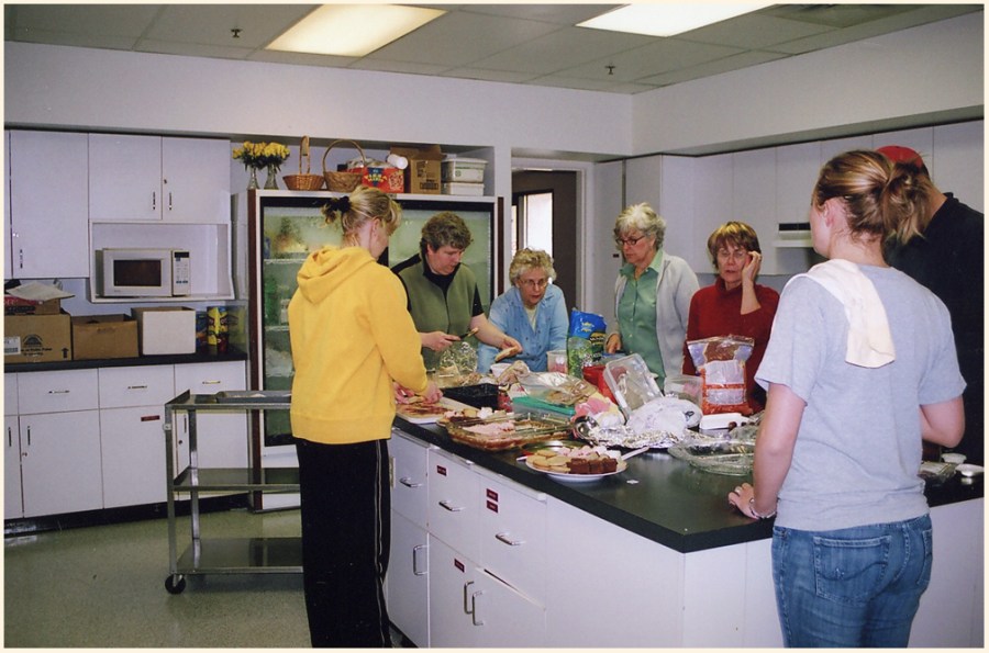 In church kitchen for Grandma’s 90th birthday 2006