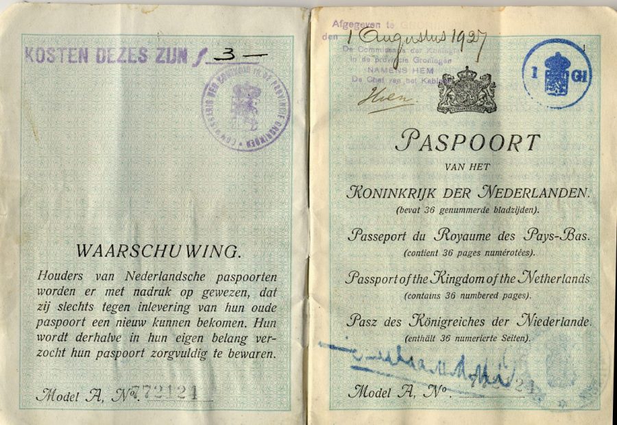 Herman Wierenga passport 1927