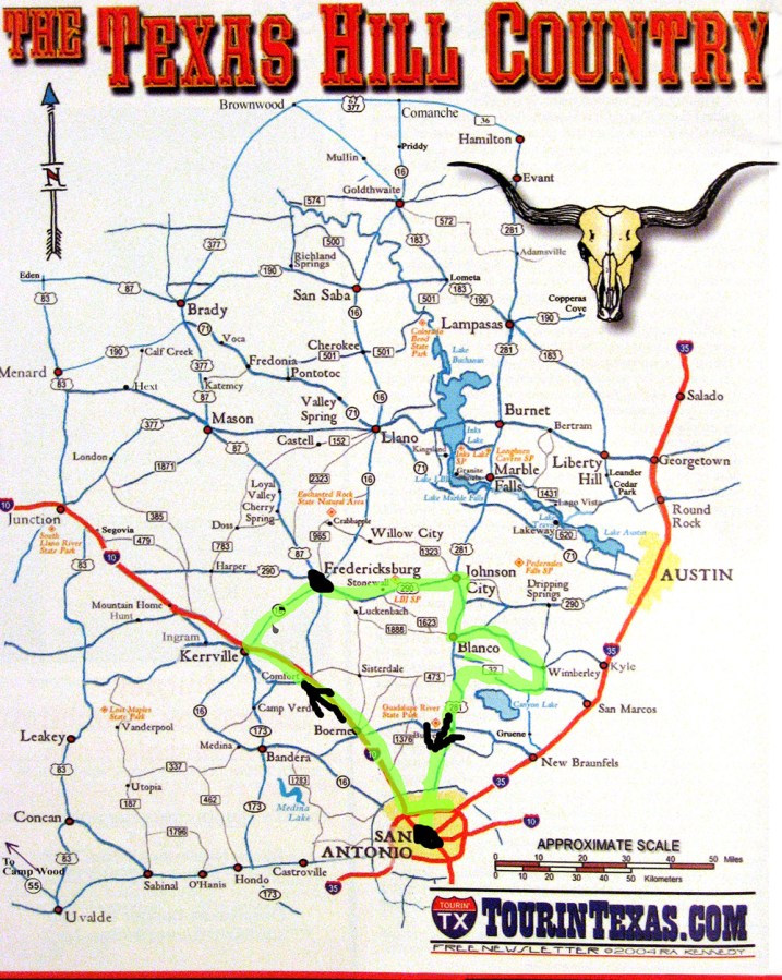 Our route through the hill country